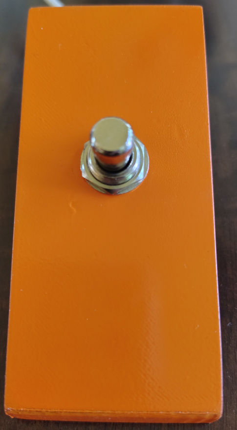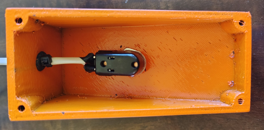 I printed the case in black PETG on my Prusa 3D printer. I then painted it with some orange Rustoleum rattle can paint I had in the shop. I used the red/green wires from the RJ-11 wire to connect to the switch and  1/4″ plug.